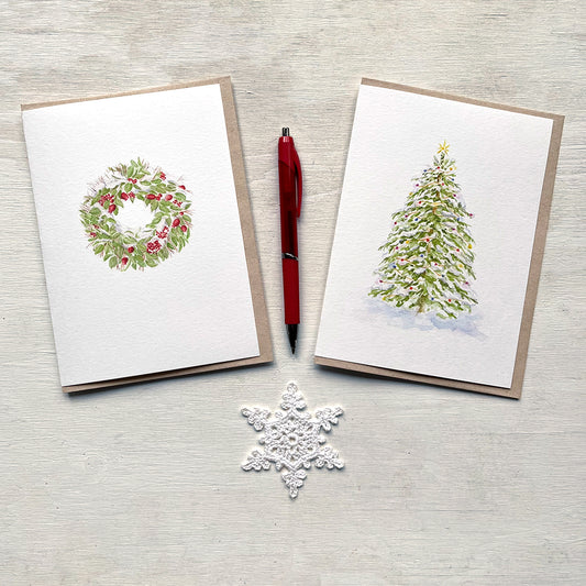 Wreath and Christmas Tree Holiday Card Duo - Set of 6