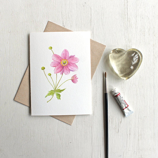 Pink Japanese Anemone Flower Note Cards
