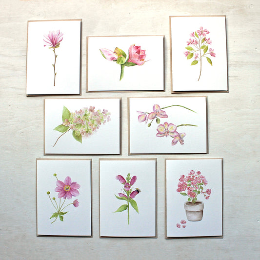 Set of 8 Pink Floral Note Cards