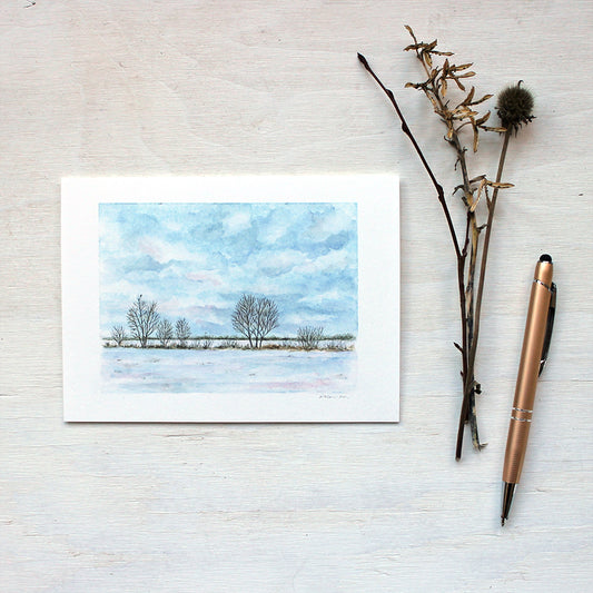 Clouds, Trees and Tiny Bird - Winter Landscape Note Cards